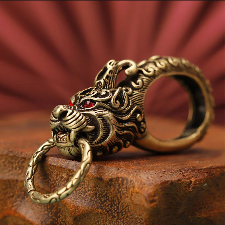 Ретро антикварні брелок з чистої латуні з червоними очима і головою дракона для ключів автоключів і сигналізації
