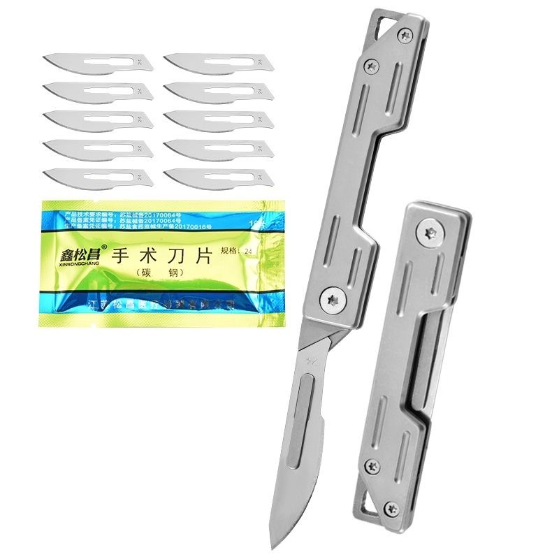 Універсальний ніж - брелок скальпель сірого кольору +10шт лез